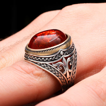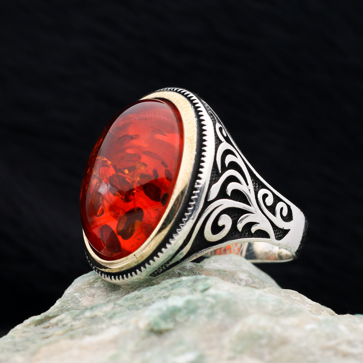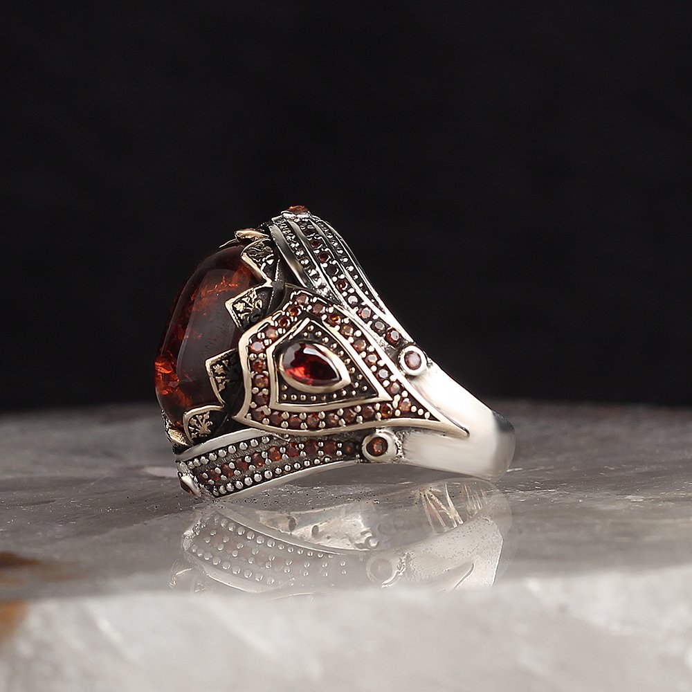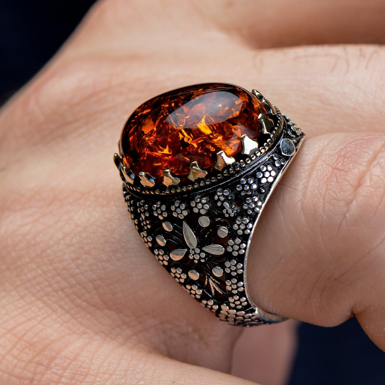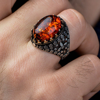 Kehribar Taşlı 925 Ayar Gümüş Yüzük