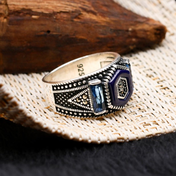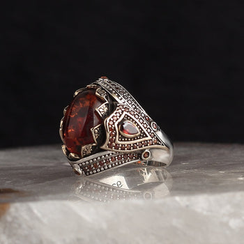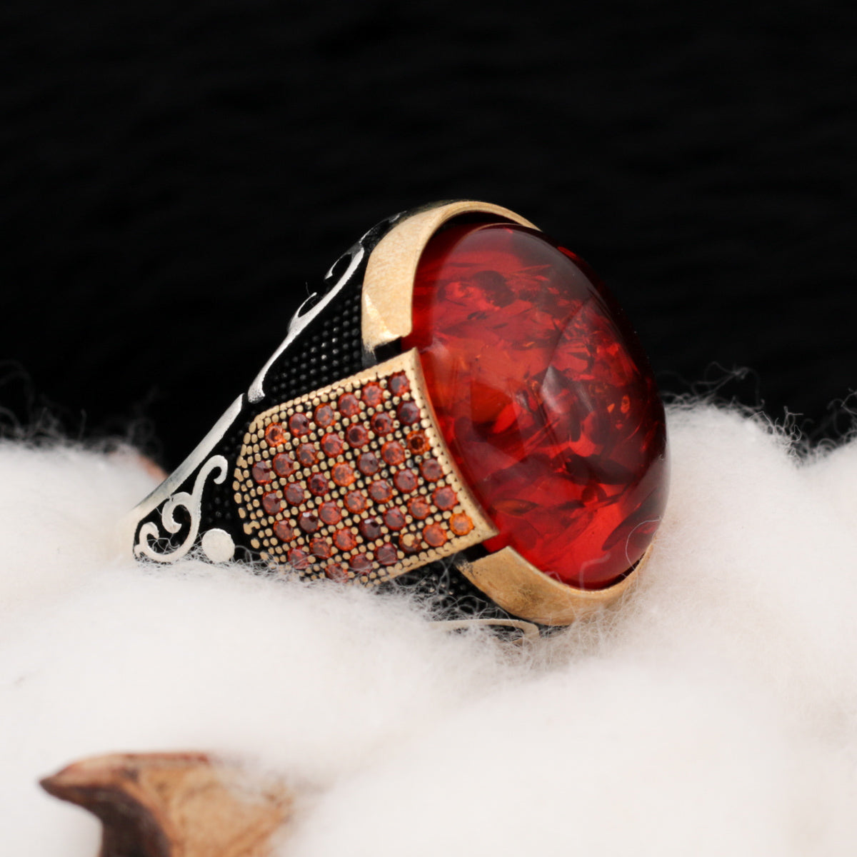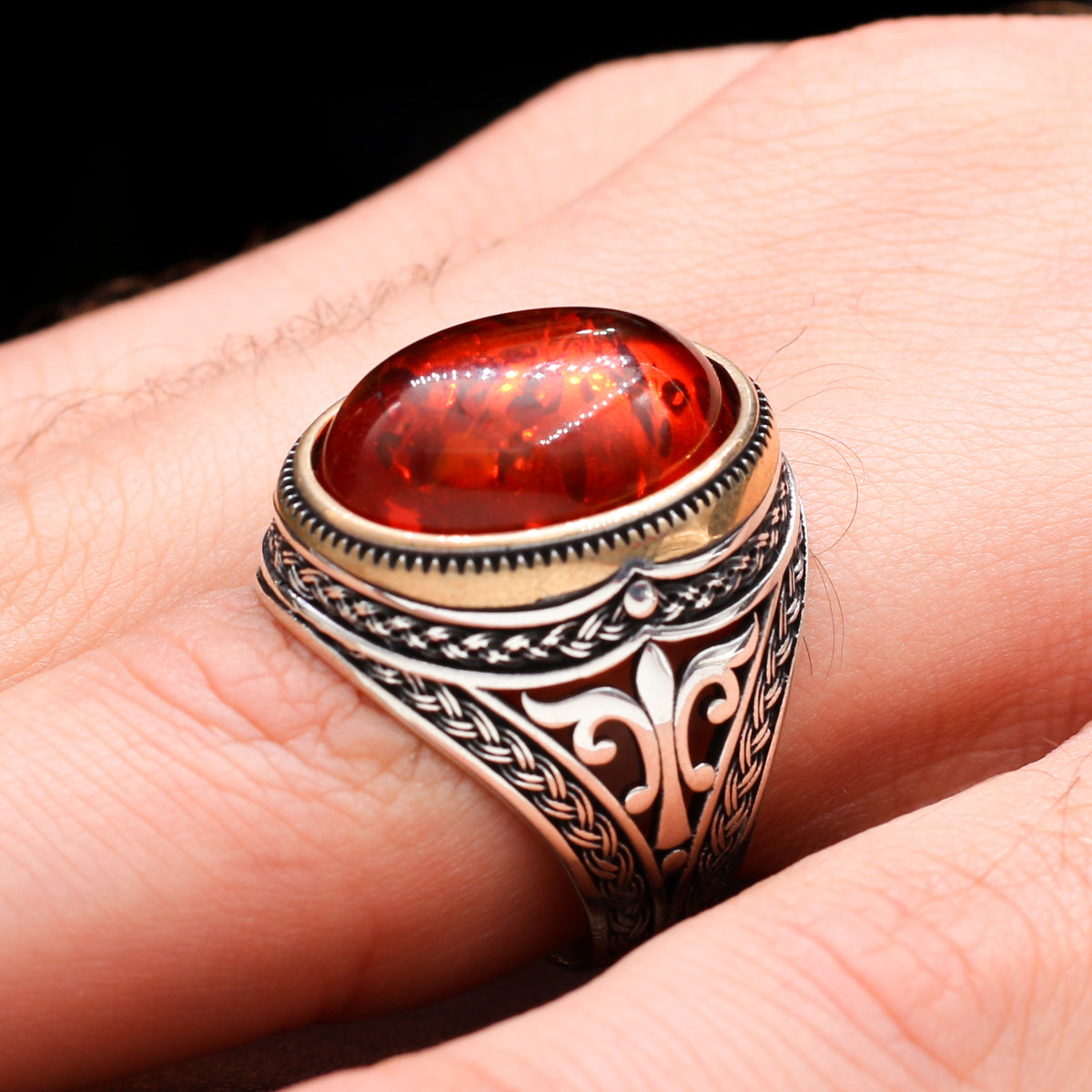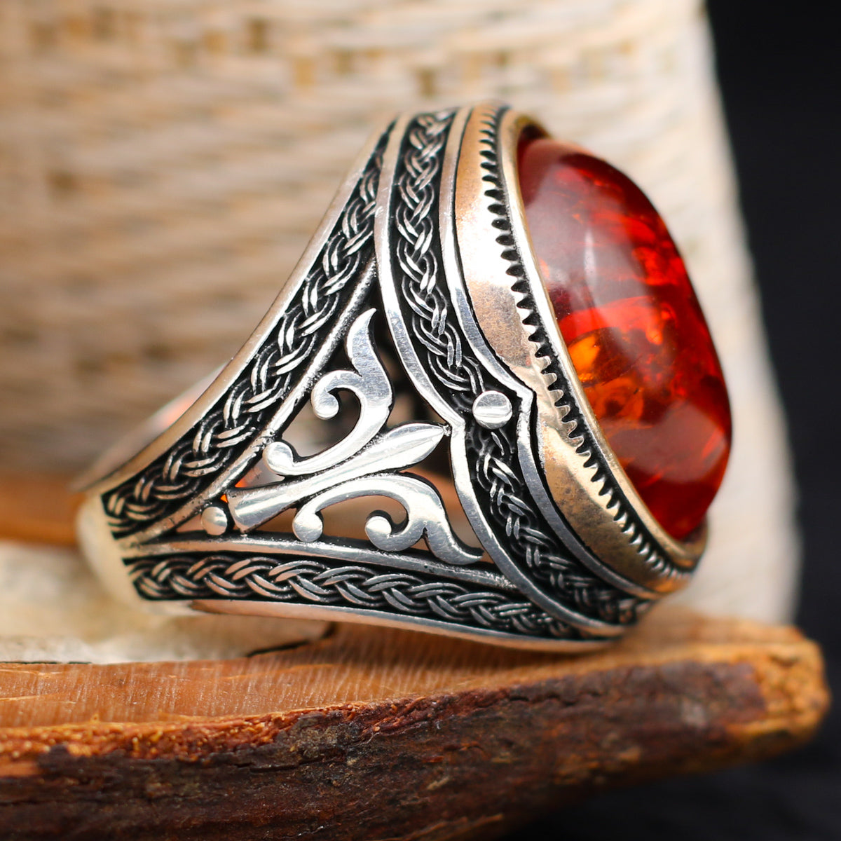Kehribar Taşlı 925 Ayar Gümüş Yüzük