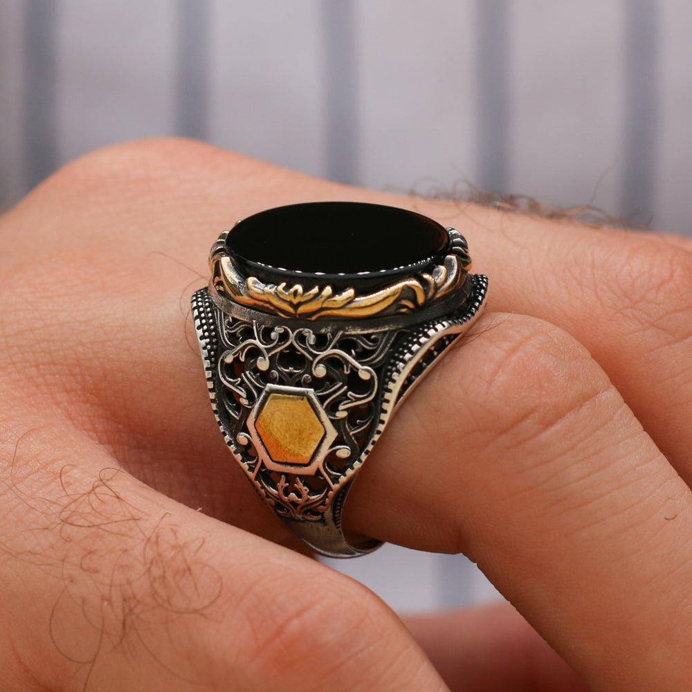 Siyah taşlı tasarımı gerçekten harika. Parmakta duruşu çok klas, mutlaka tavsiye ederim.
