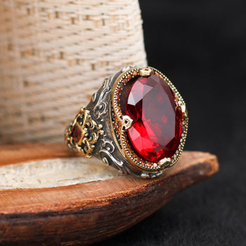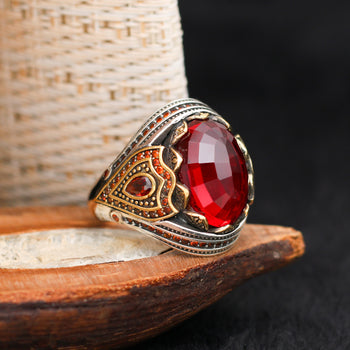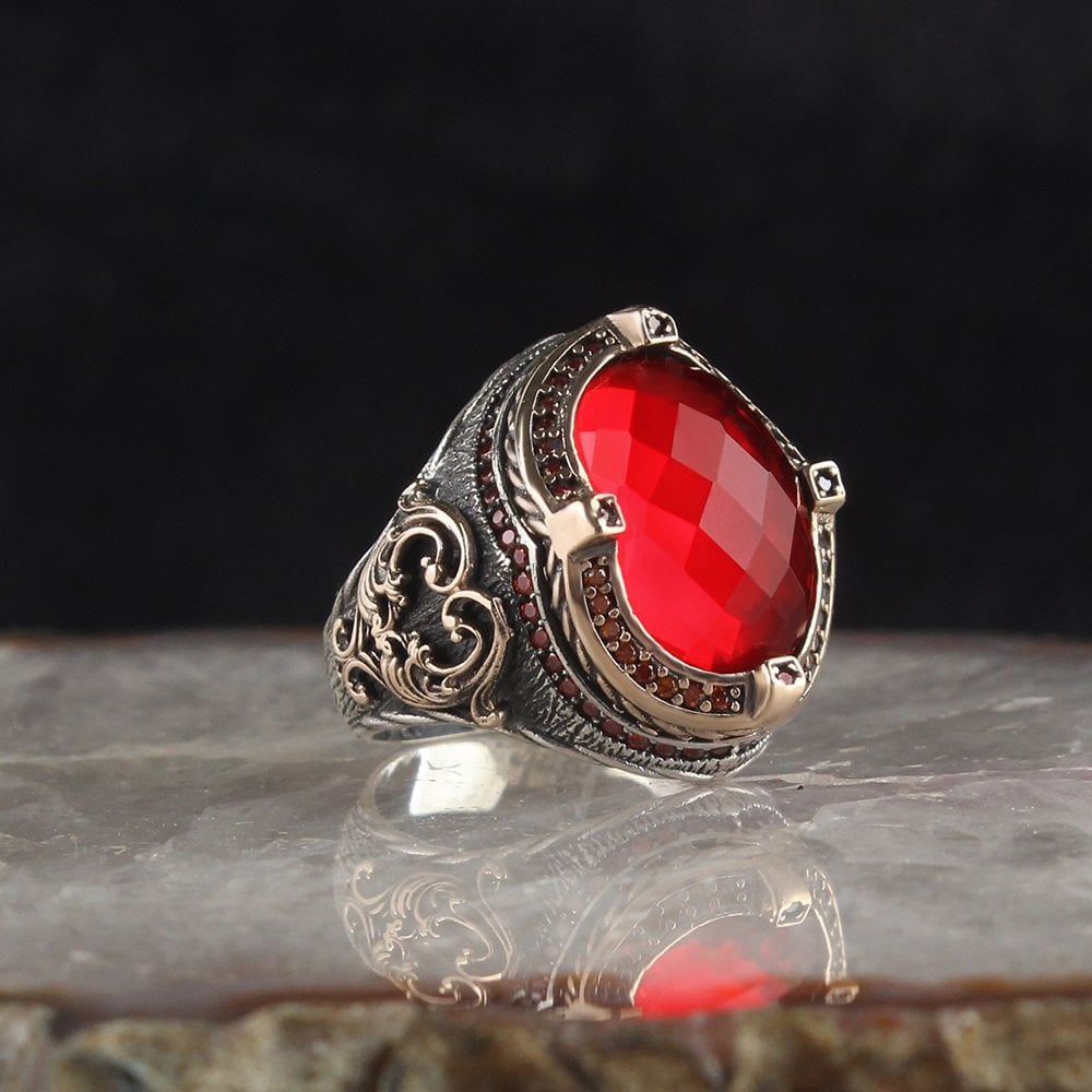Kırmızı Zirkon Taşlı Gümüş Yüzük
