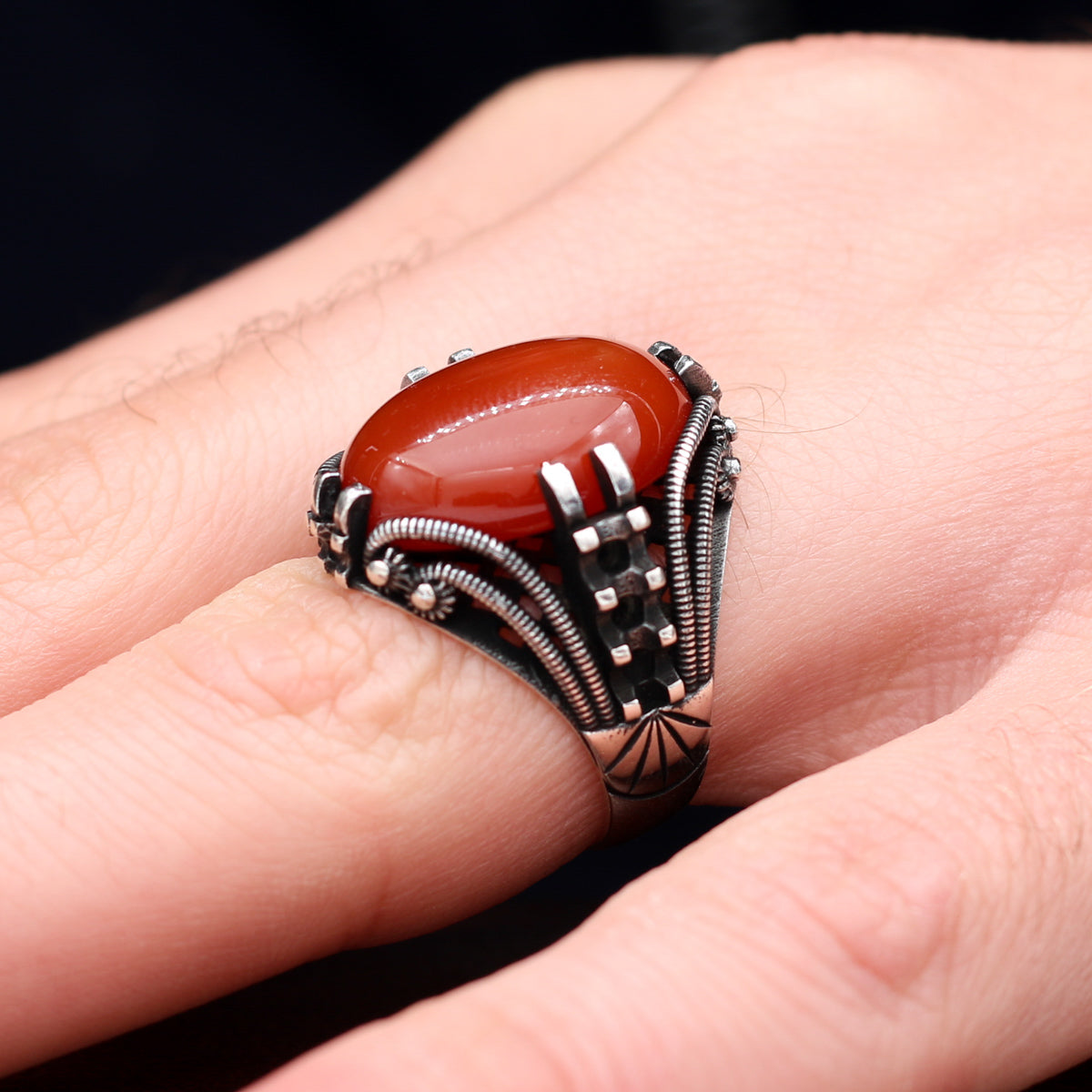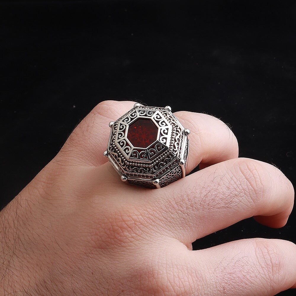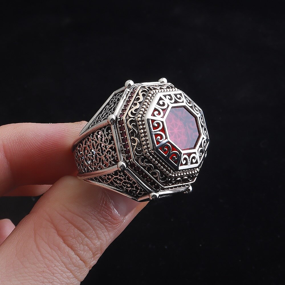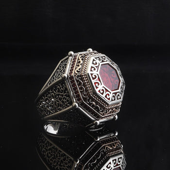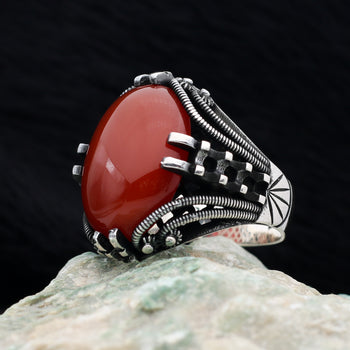 Kırmızı Akik Taşlı Gümüş Yüzük