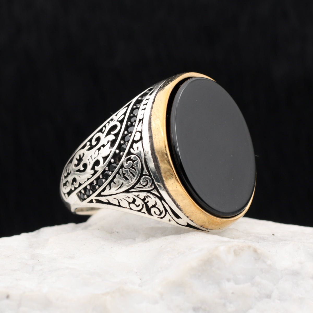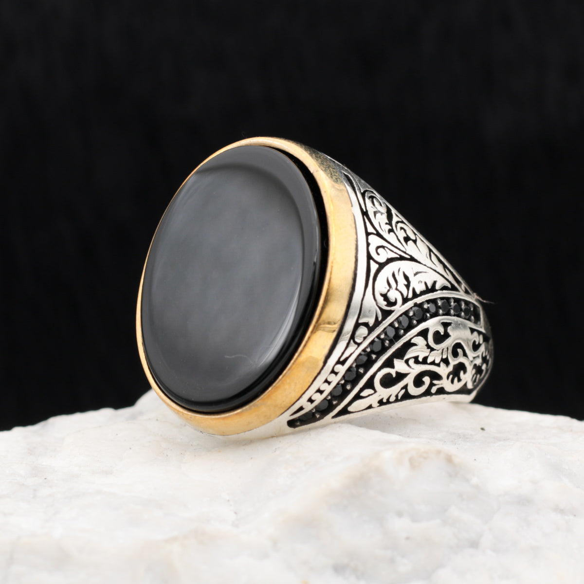 Siyah Oniks Taşlı Erkek Yüzük (SS-039)