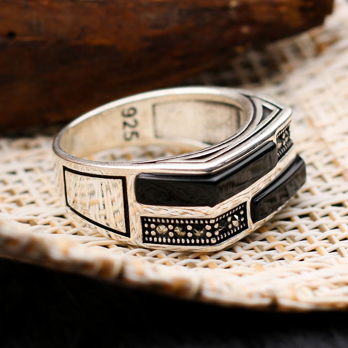 Markazit Ve Siyah Oniks Taşlı Gümüş Yüzük