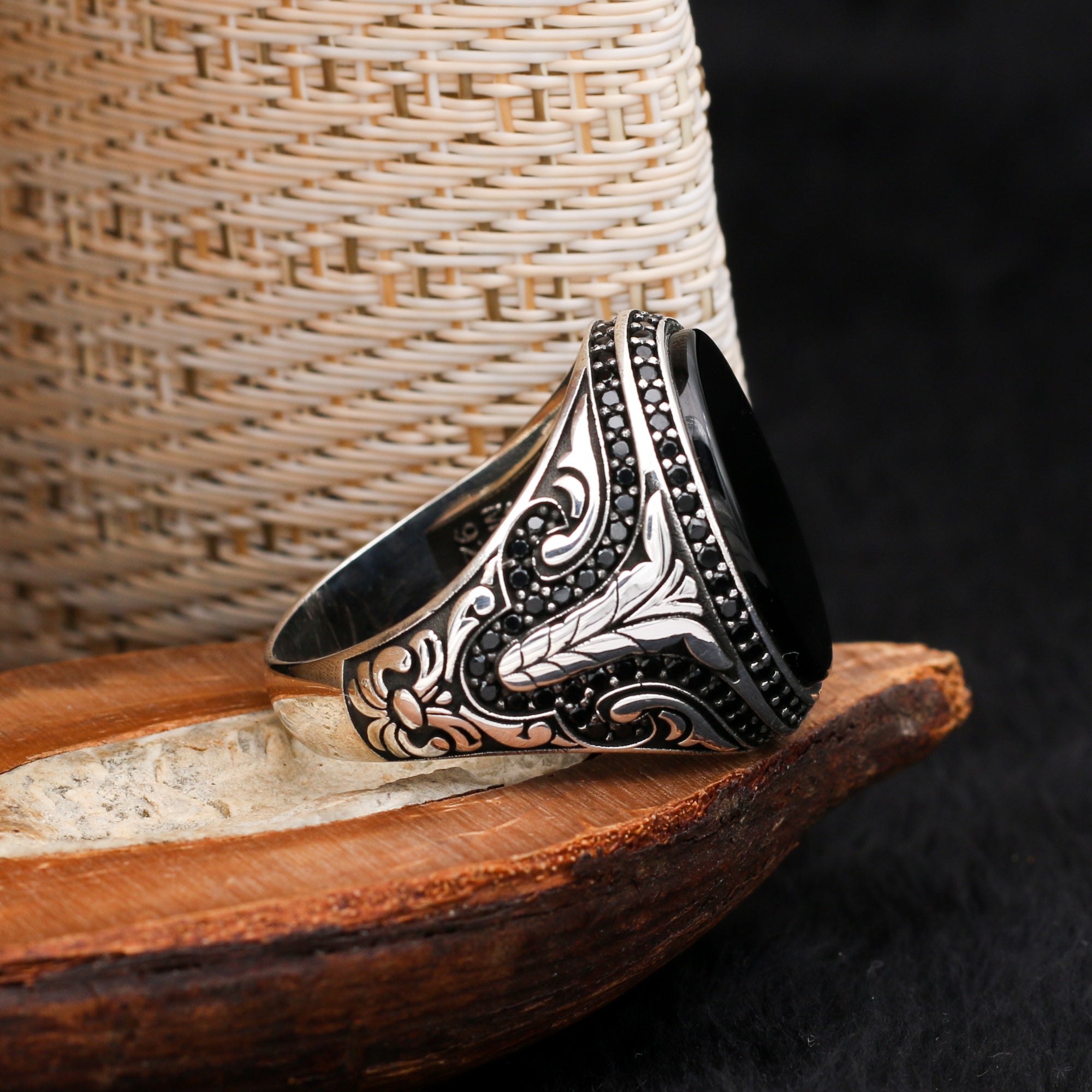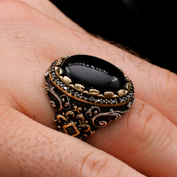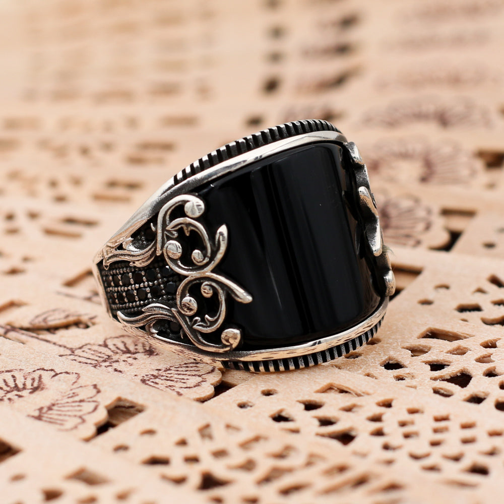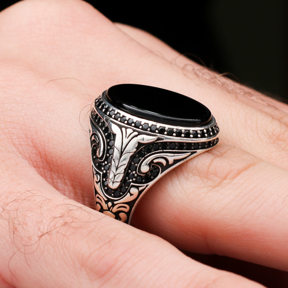 Siyah Oniks Taşlı Erkek Yüzük (SS-038)