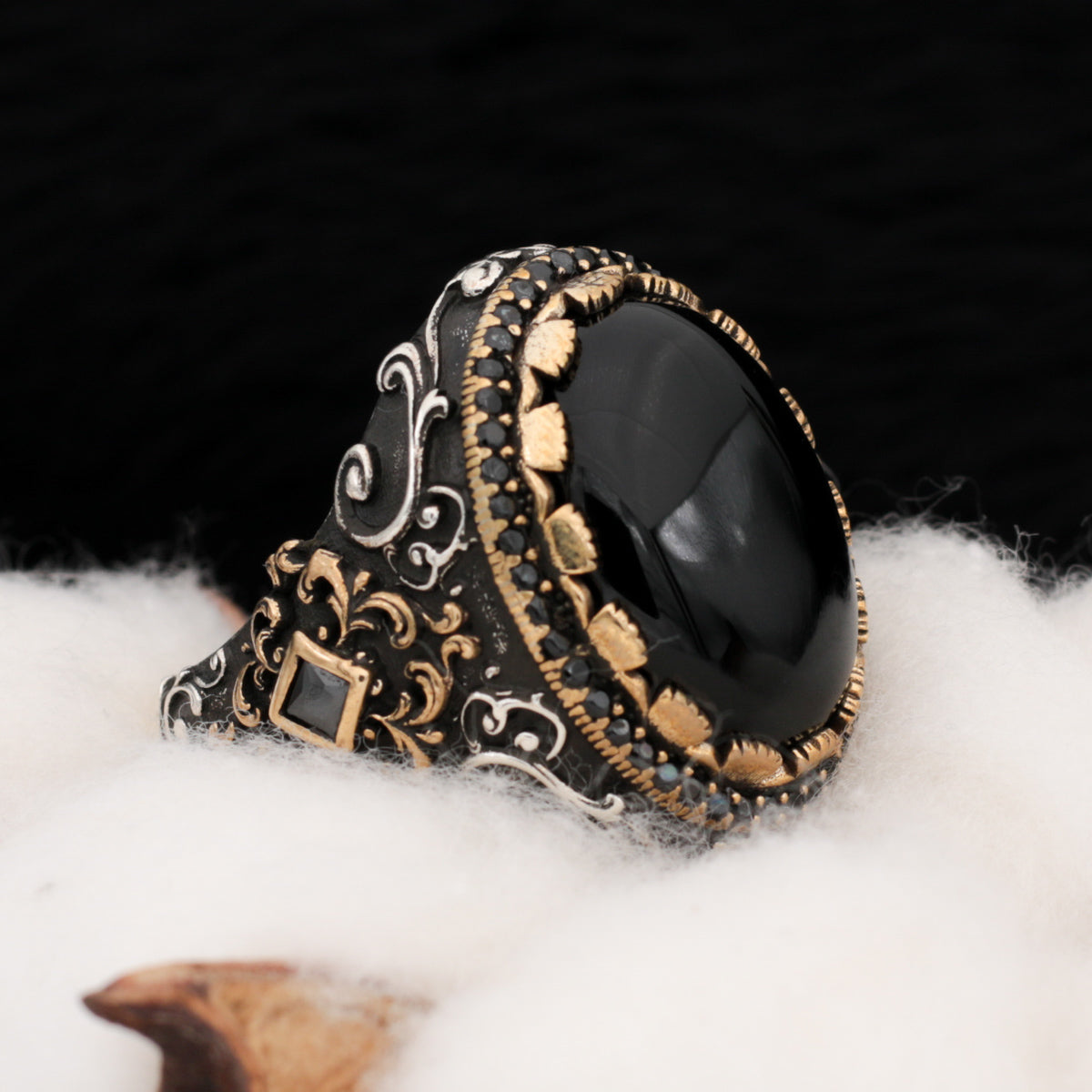 Siyah Oniks Taşlı Erkek Yüzük (SS-040)
