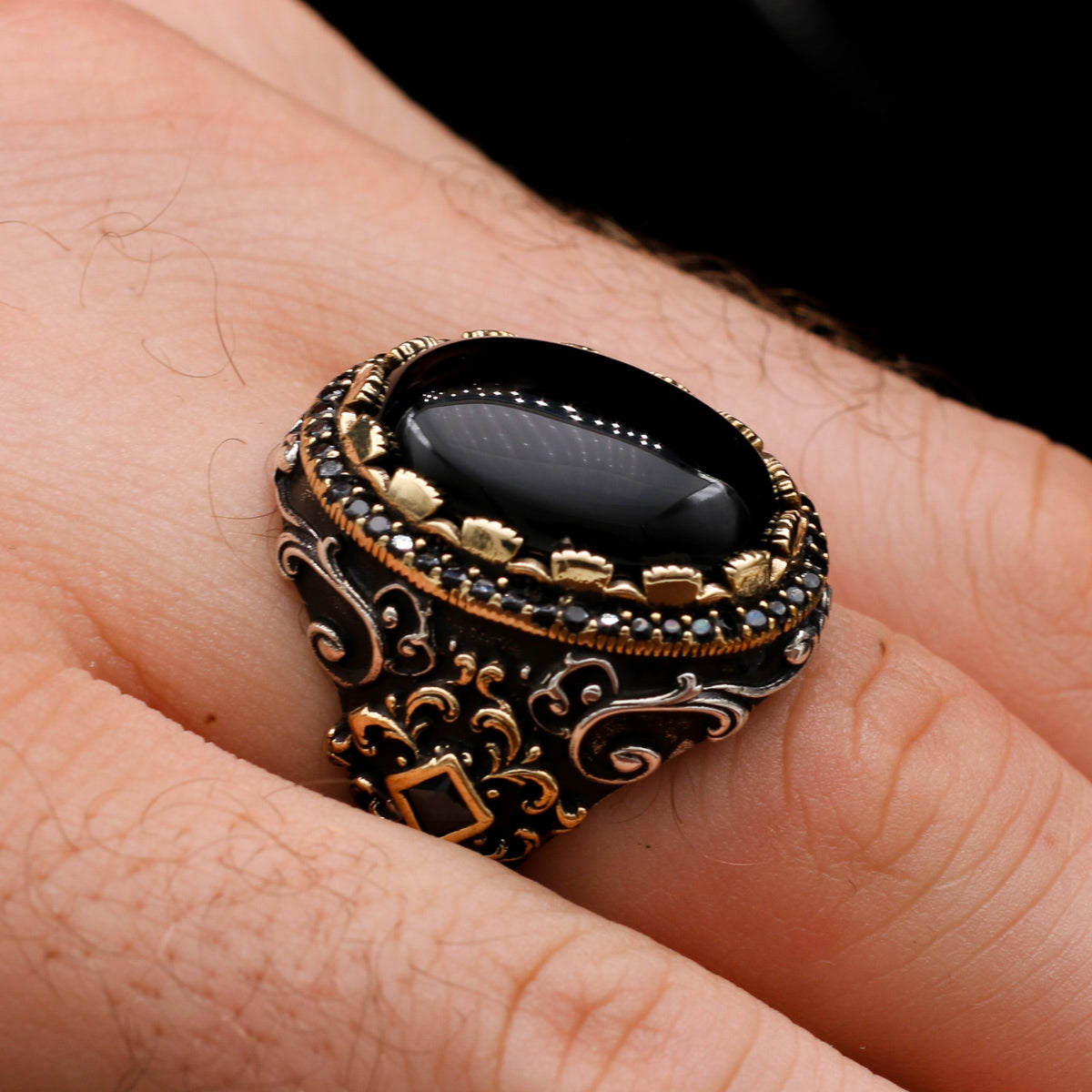 Siyah Oniks Taşlı Erkek Yüzük