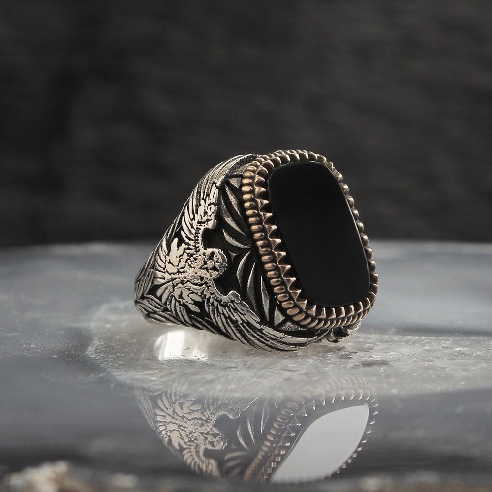 Siyah Oniks Taşlı Gümüş Yüzük