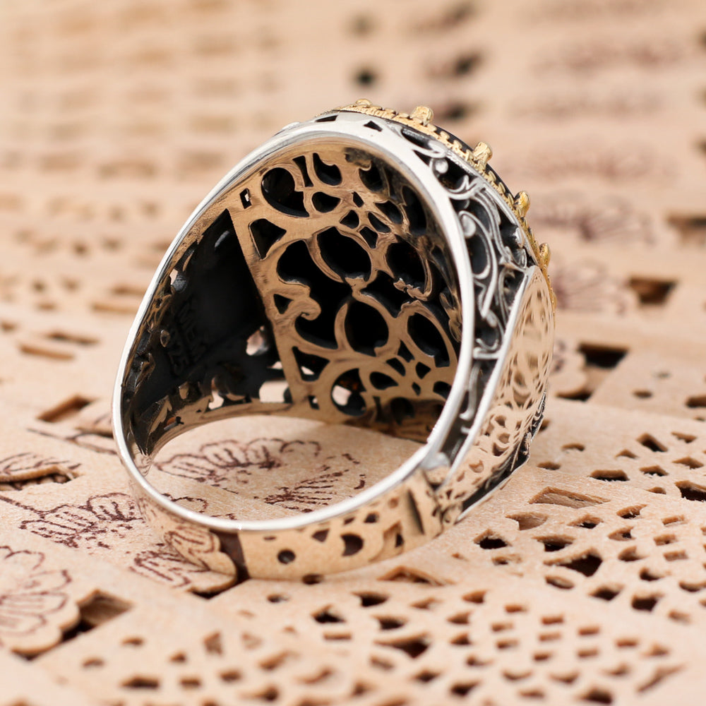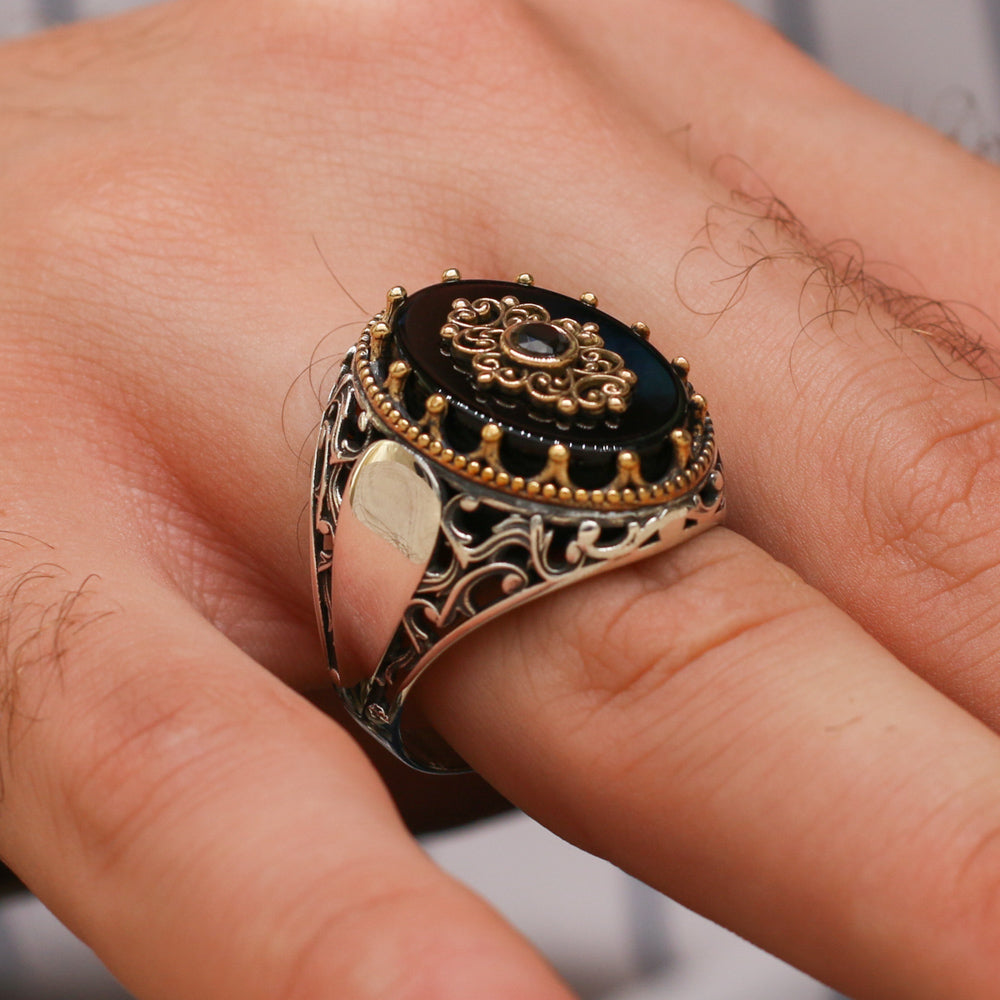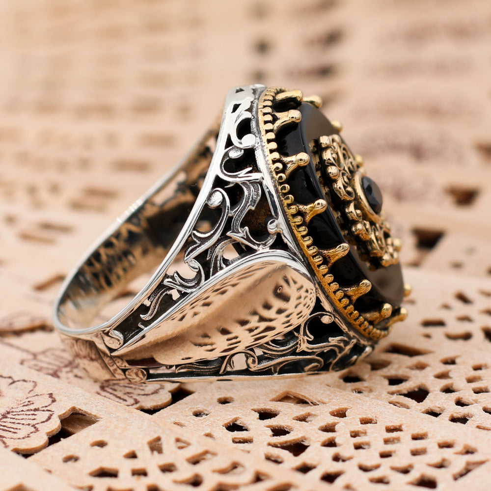 Siyah Oniks Taşlı İşlemeli Yüzük
