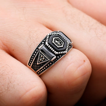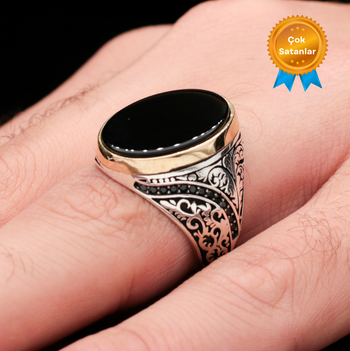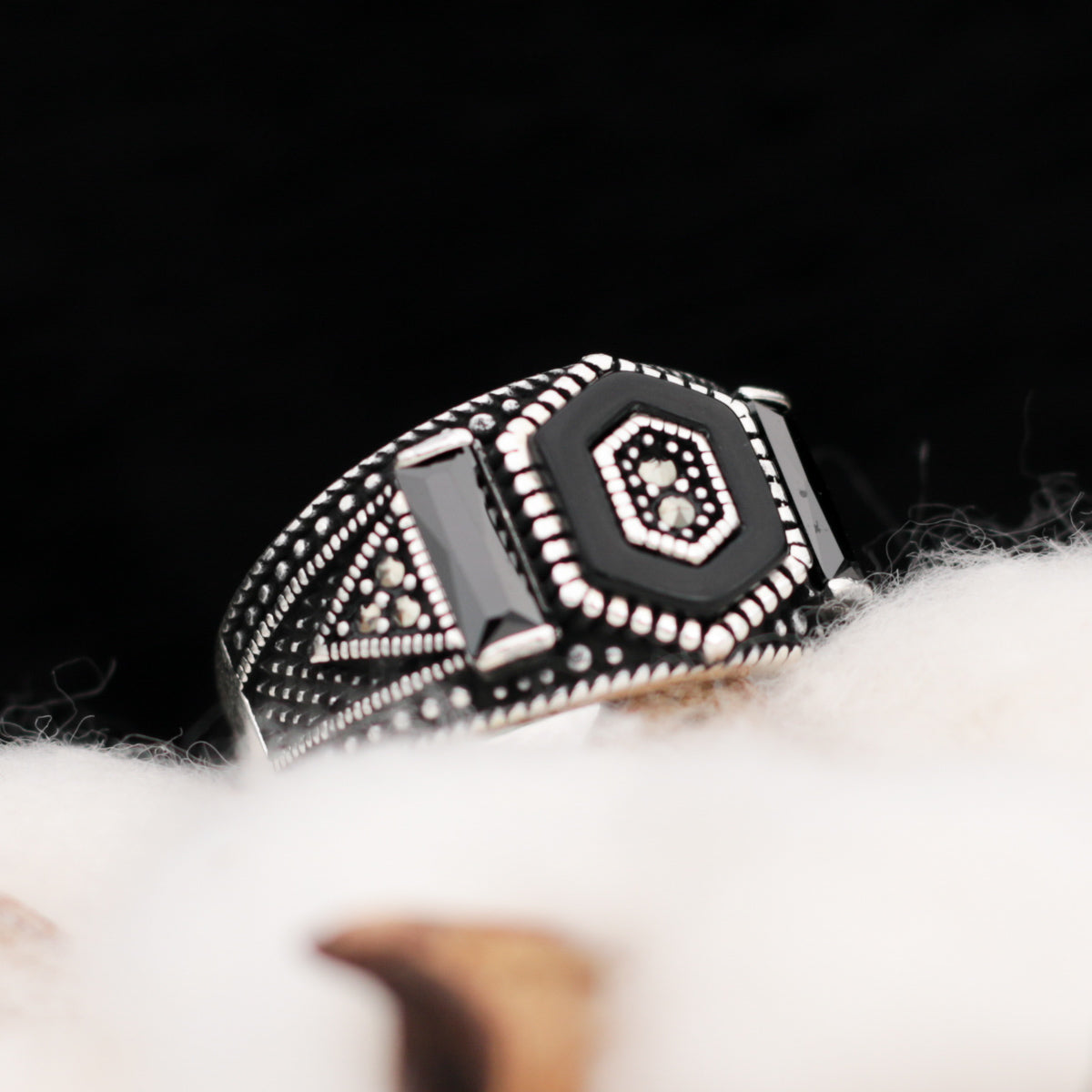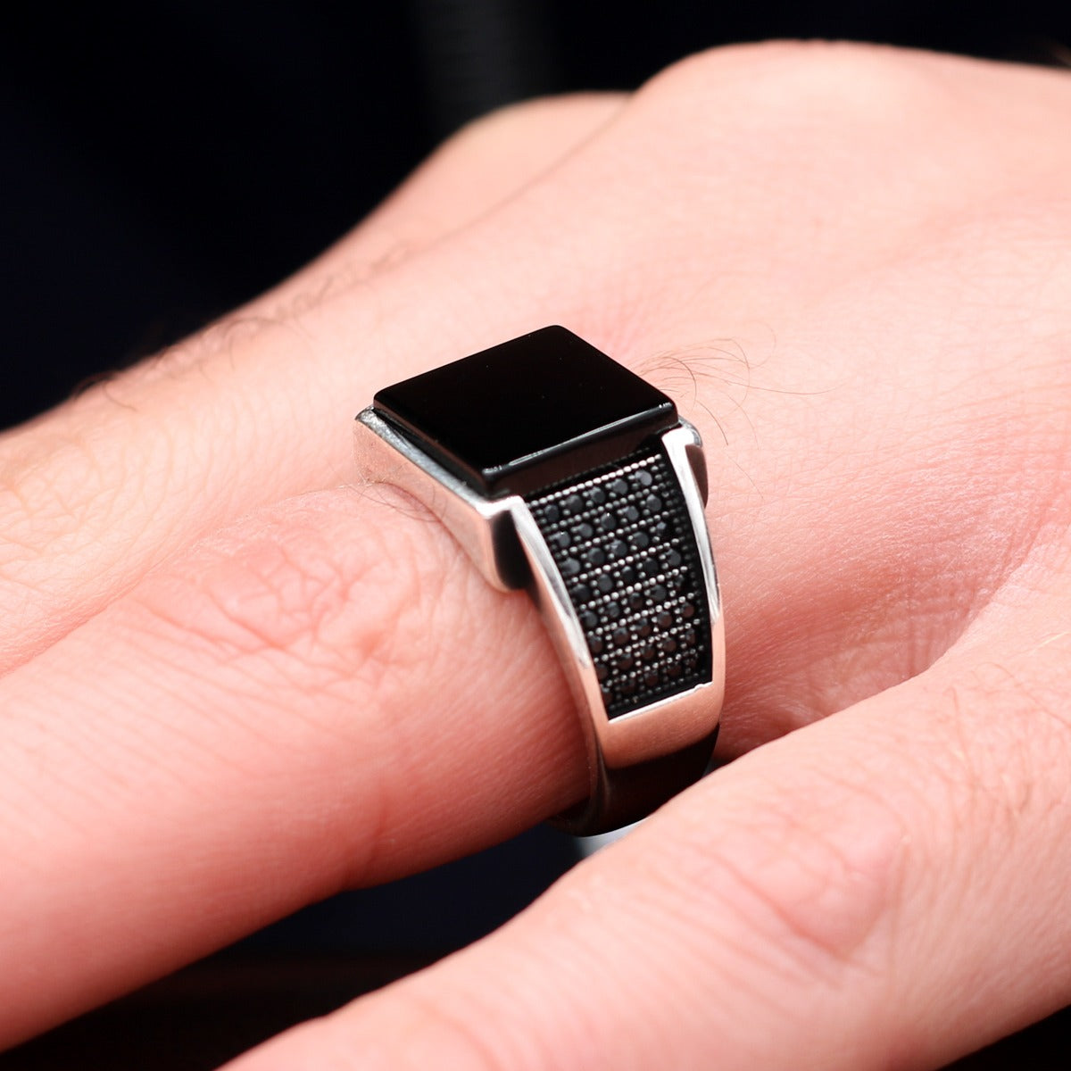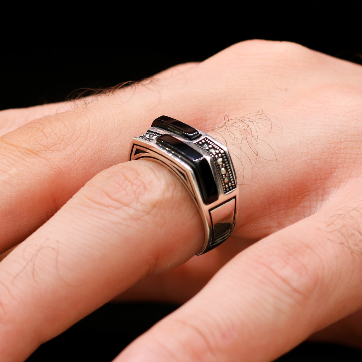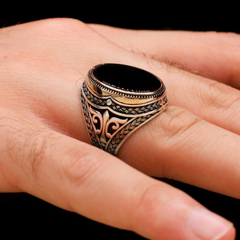 Siyah Oniks Taşlı Erkek Yüzük (SS-038)