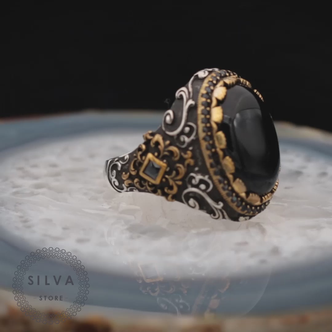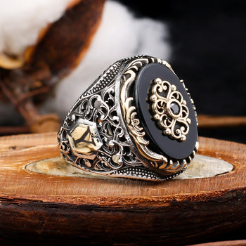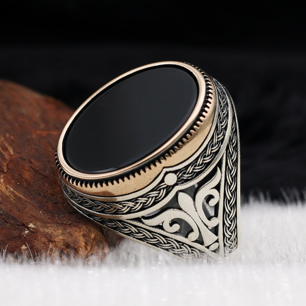 Siyah Oniks Taşlı Erkek Yüzük (SS-040)