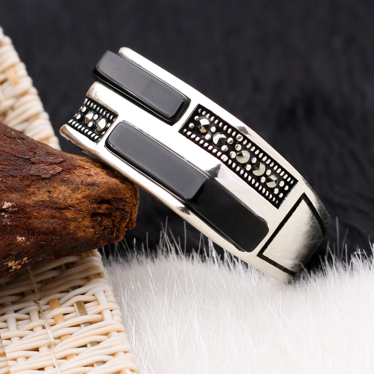 Markazit Ve Siyah Oniks Taşlı Gümüş Yüzük