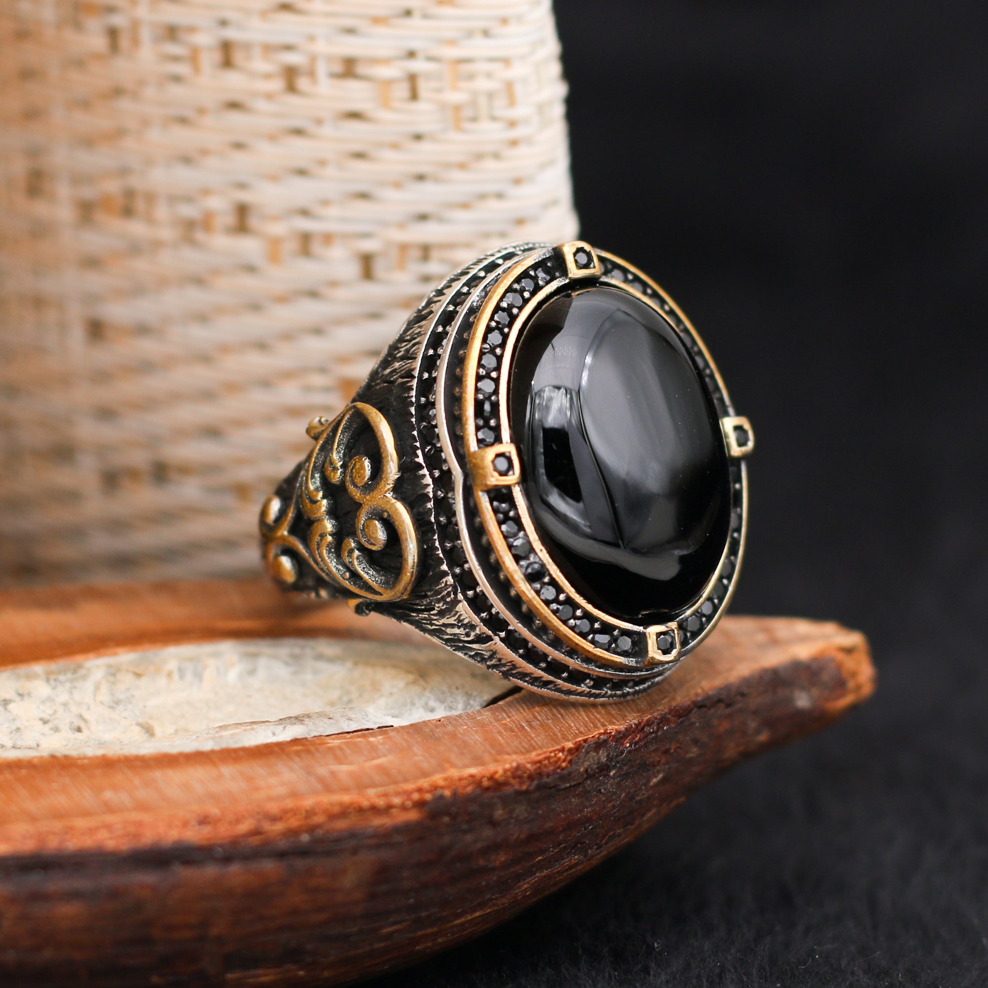 Siyah Oniks Taşlı Erkek Yüzük (SS-039)