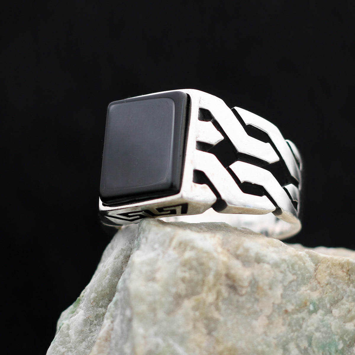 Siyah Kare Oniks Taşlı Gümüş Yüzük