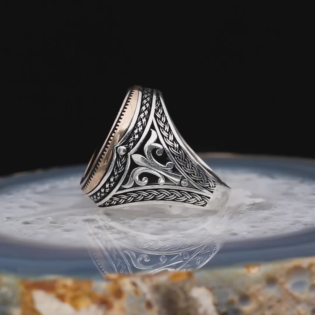 Mat Oniks Taşlı Kalem İşlemeli 925 Ayar Gümüş Yüzük
