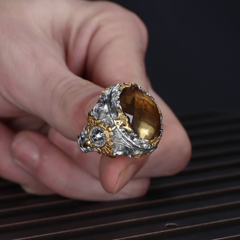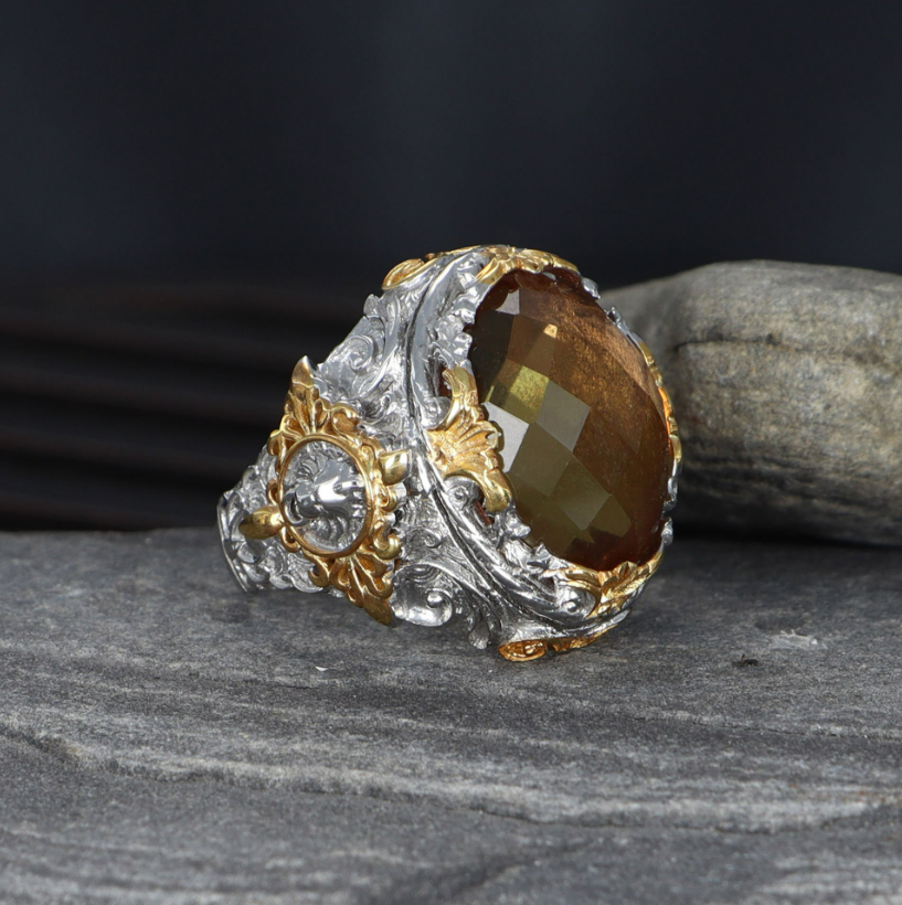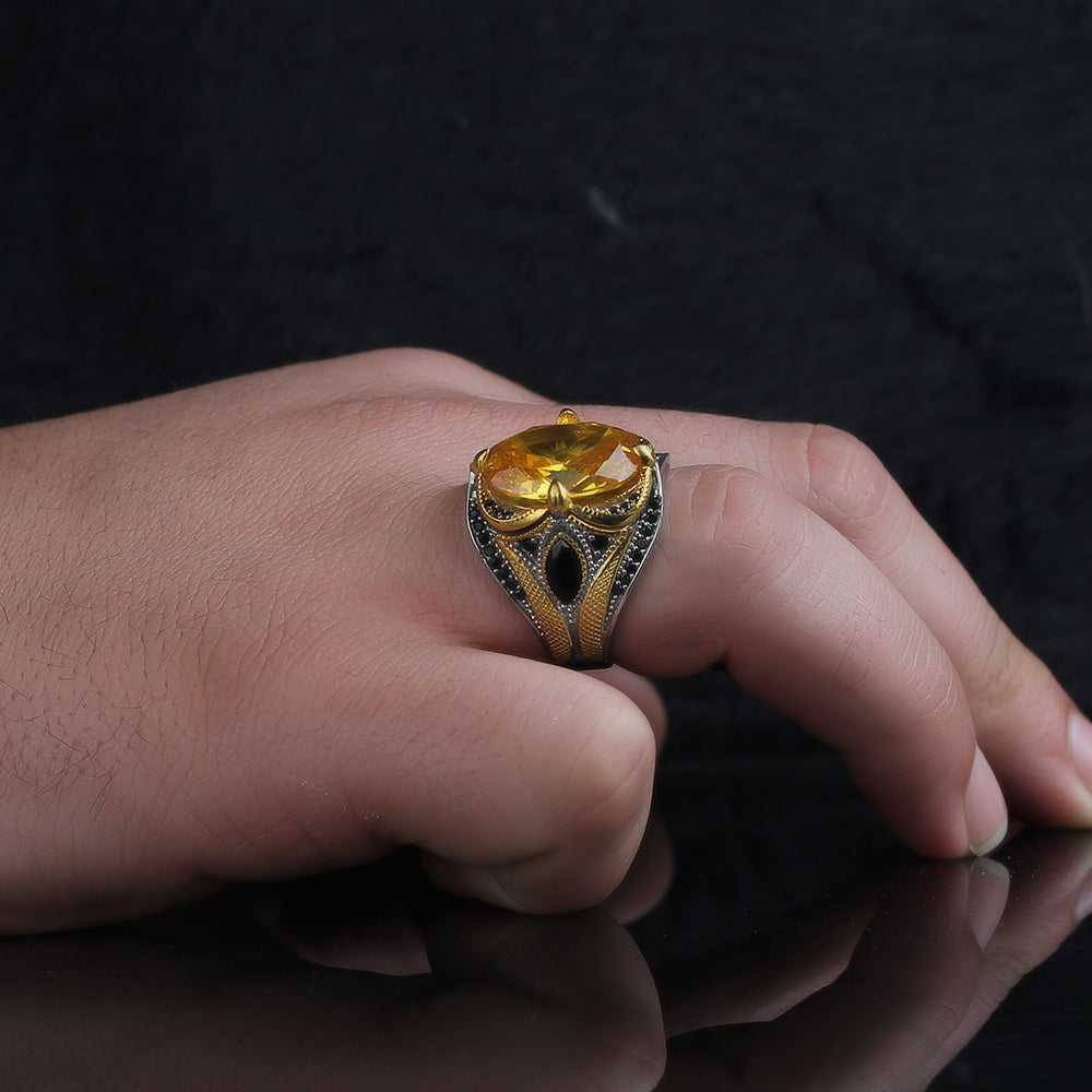 Rodaj Kaplamalı Sitrin Taşlı Gümüş Yüzük