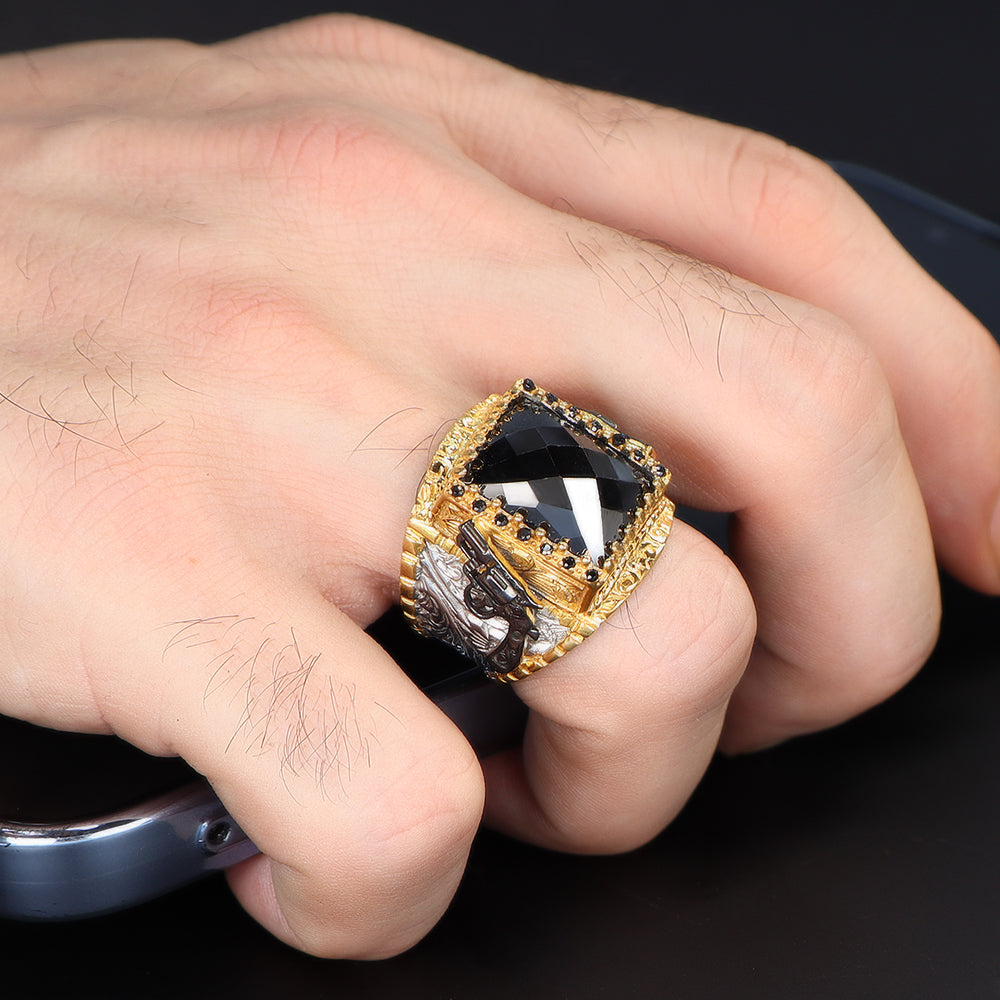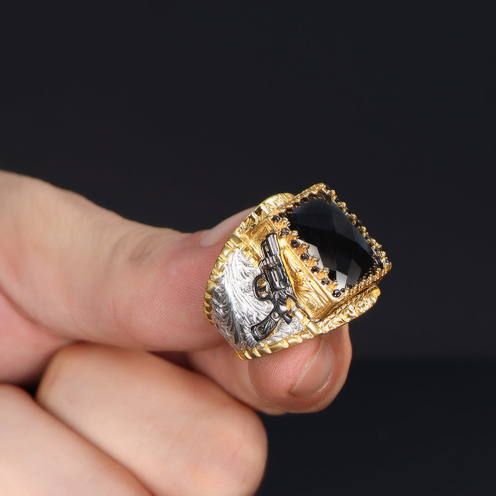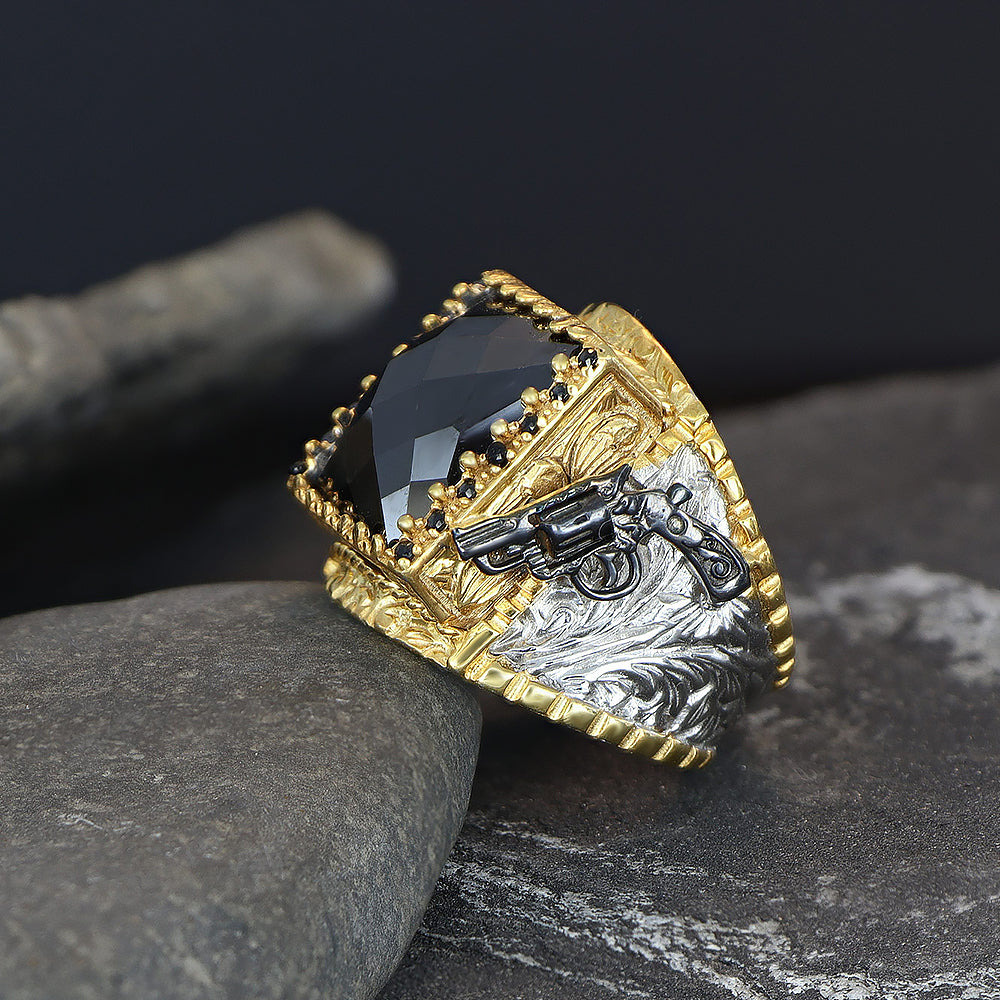 Rodaj Kaplamalı Oniks Taşlı Gümüş Yüzük