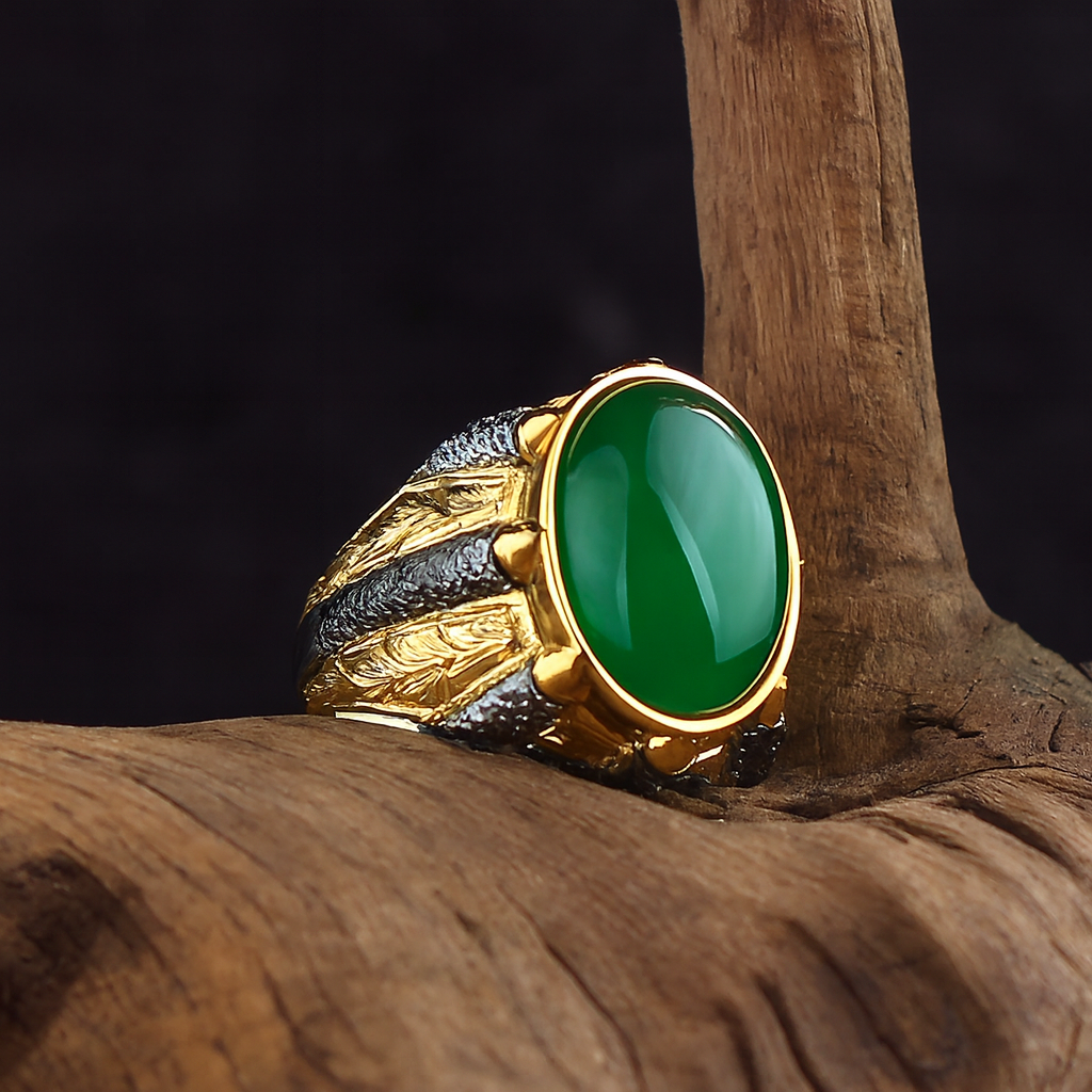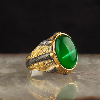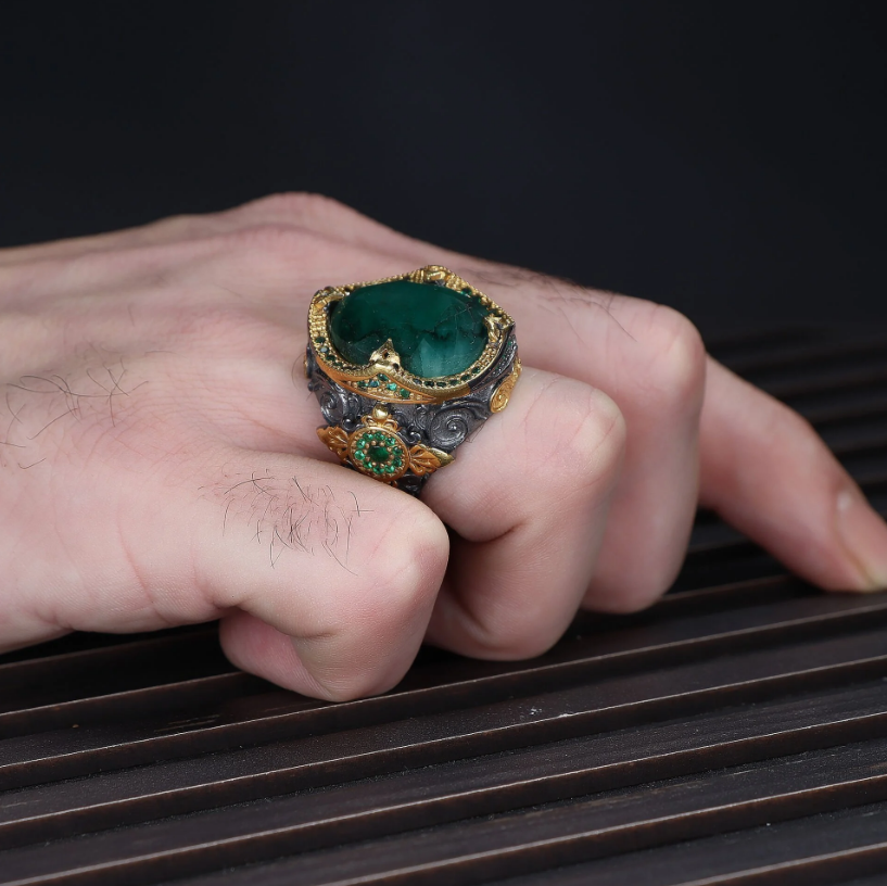 Rodaj Kaplamalı Zümrüt Taşlı Gümüş Yüzük