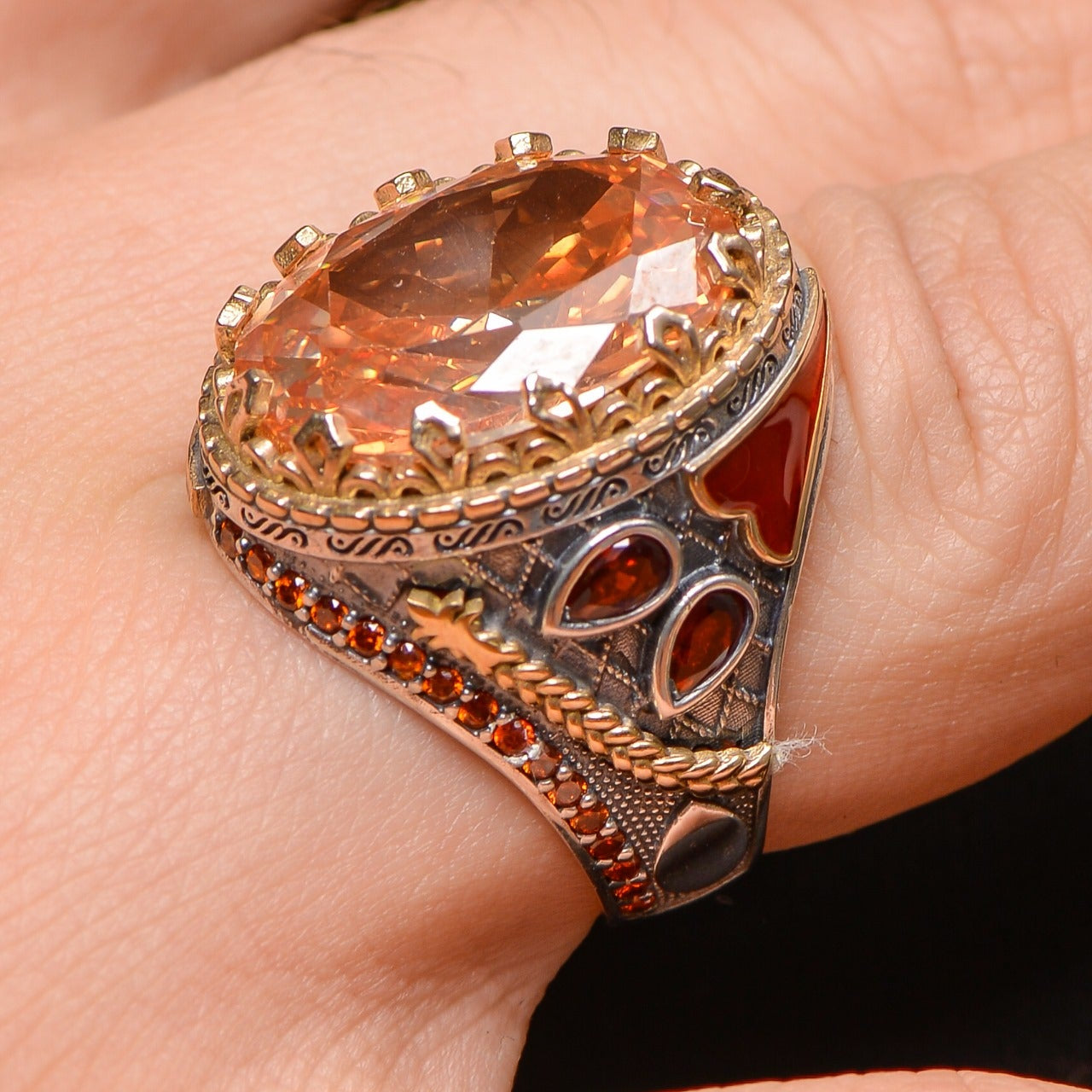 Sitrin Taşlı Şampanya Topaz Taş Süslemeli Gümüş Yüzük