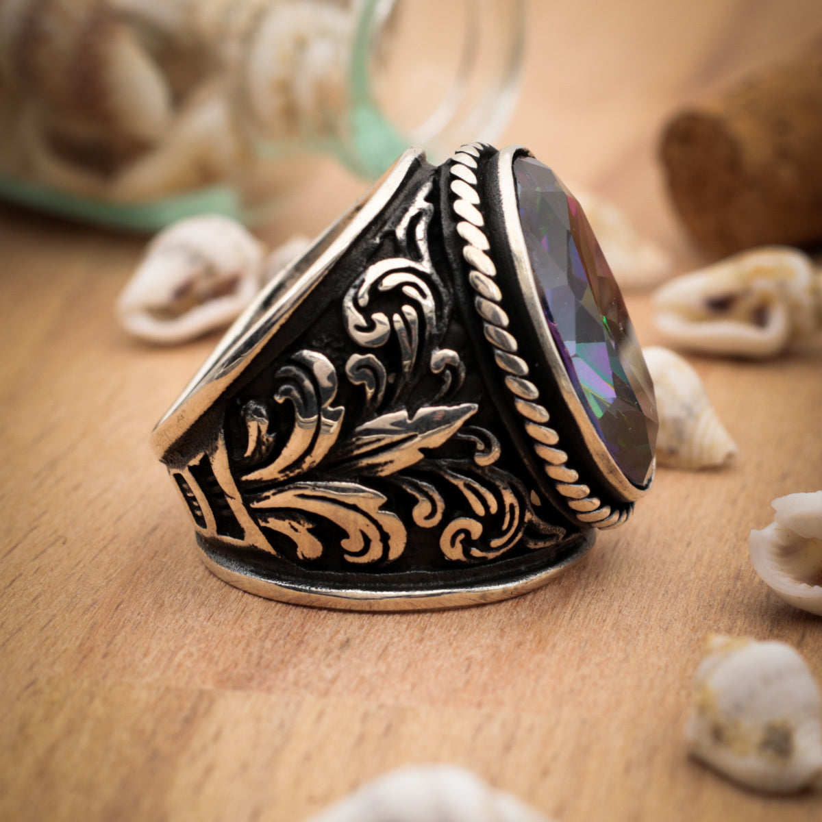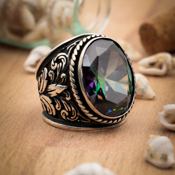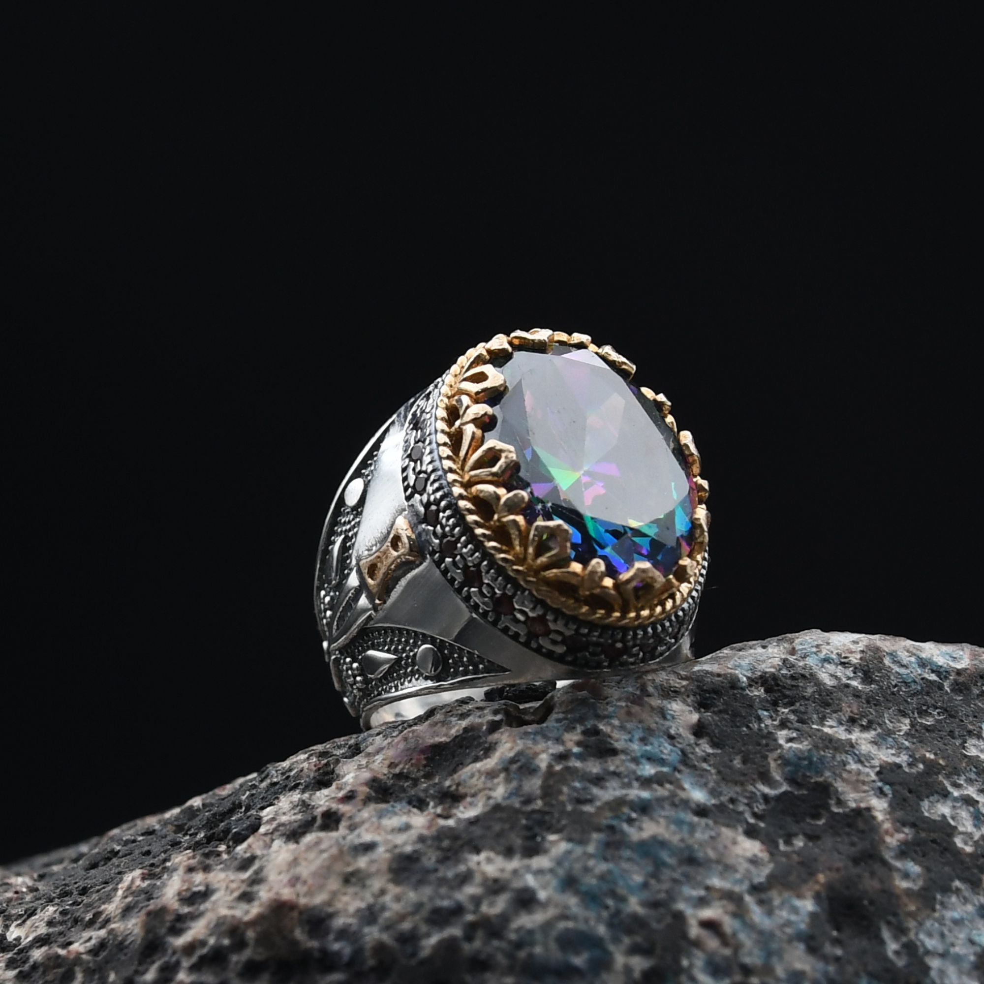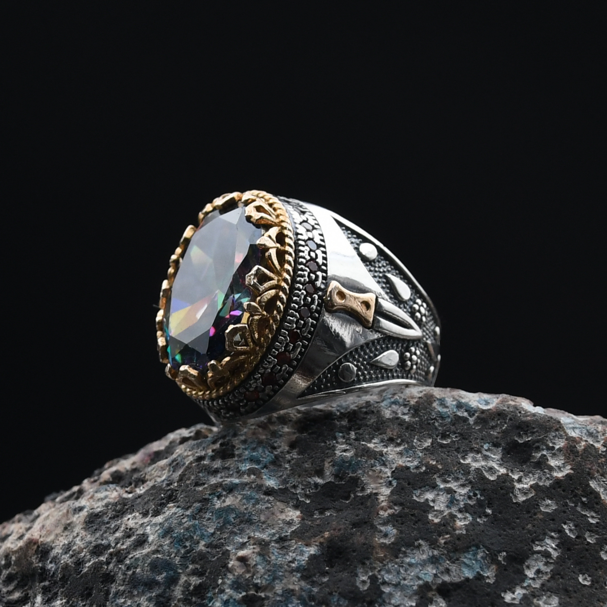 Mistik Topaz Taşlı Erkek Yüzük (SS-033)
