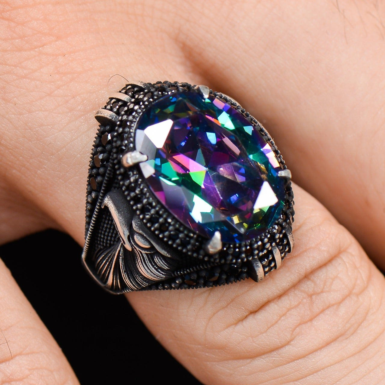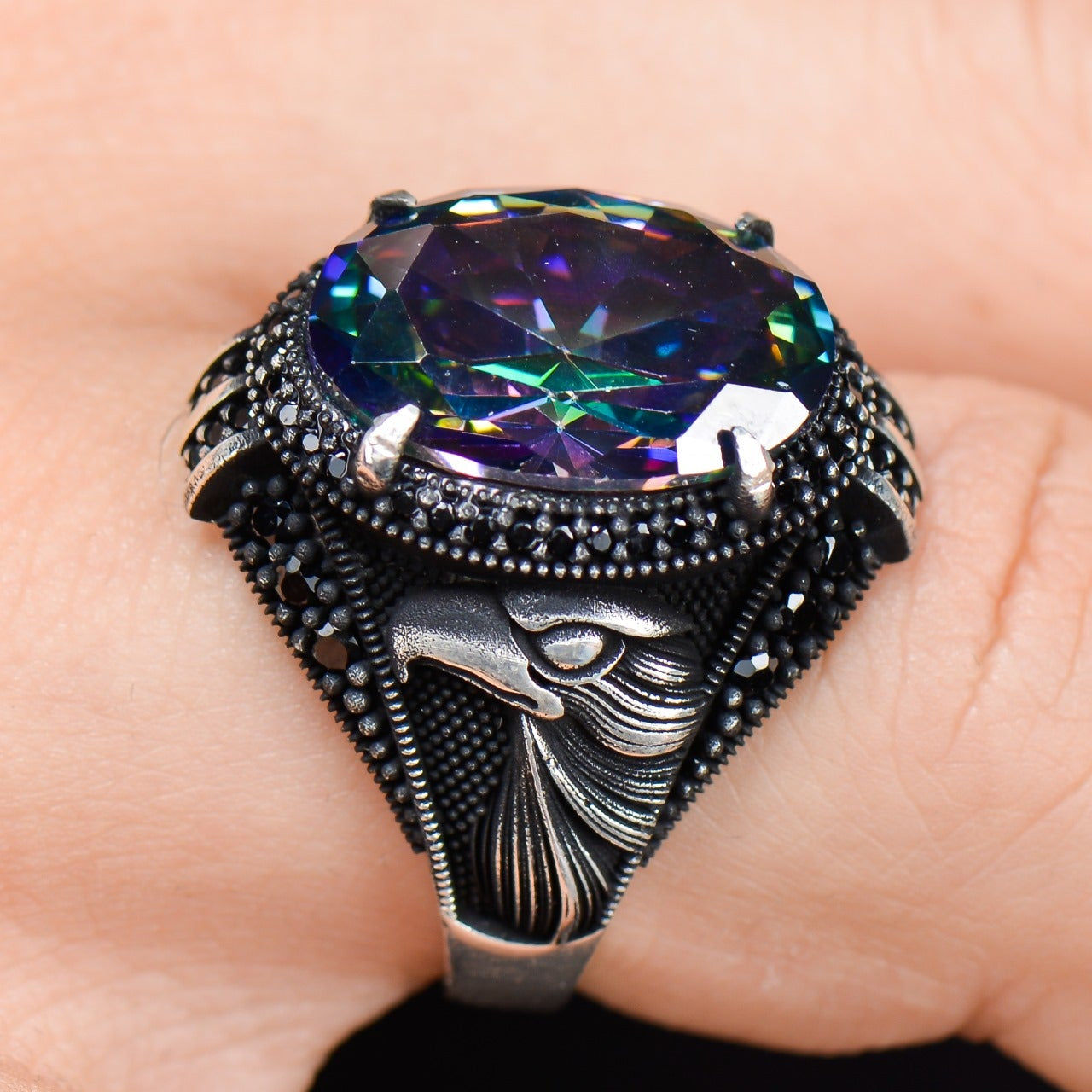 Mistik Topaz Taşlı Kartal Figürlü Yüzük