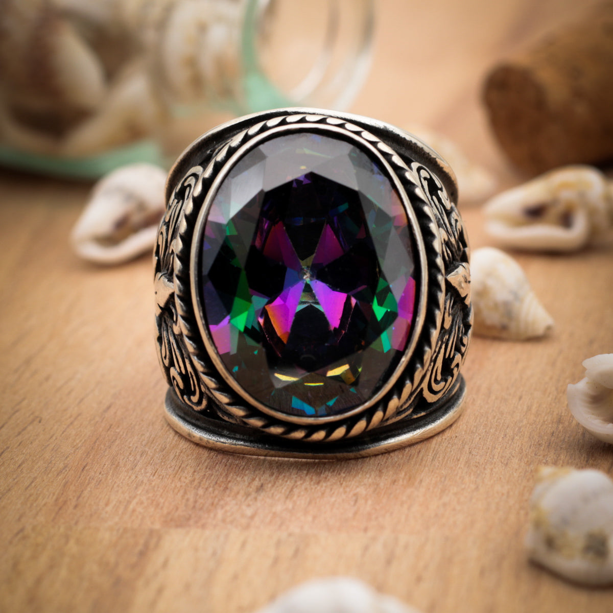Mistik Topaz Taşlı 925 Ayar Gümüş Yüzük