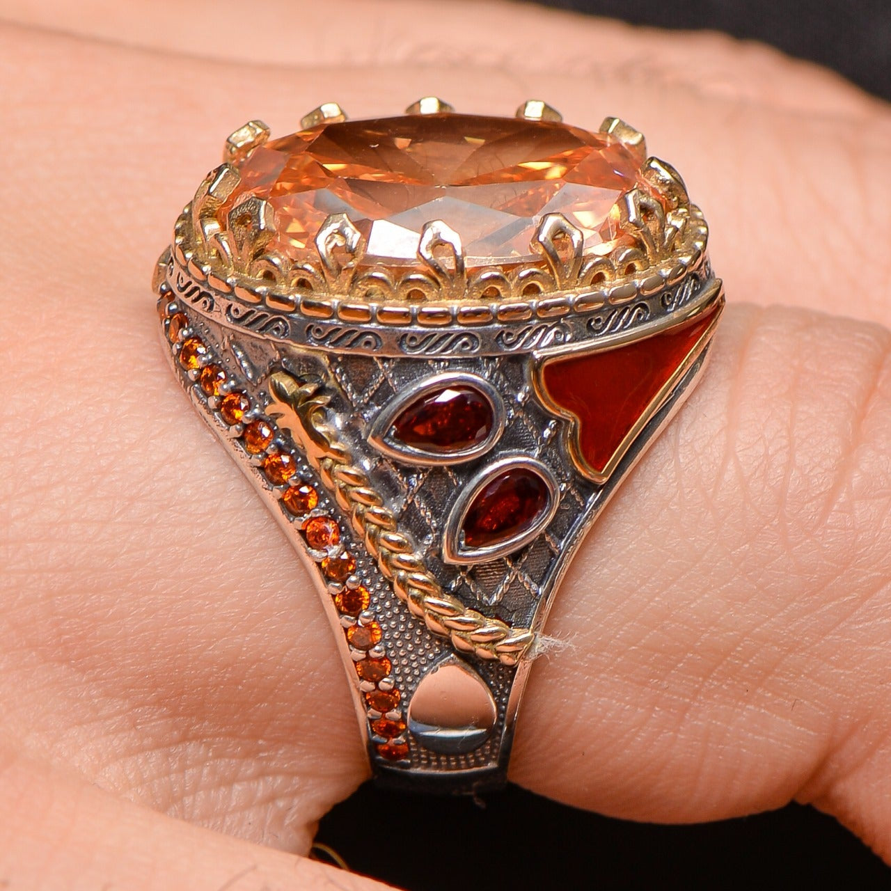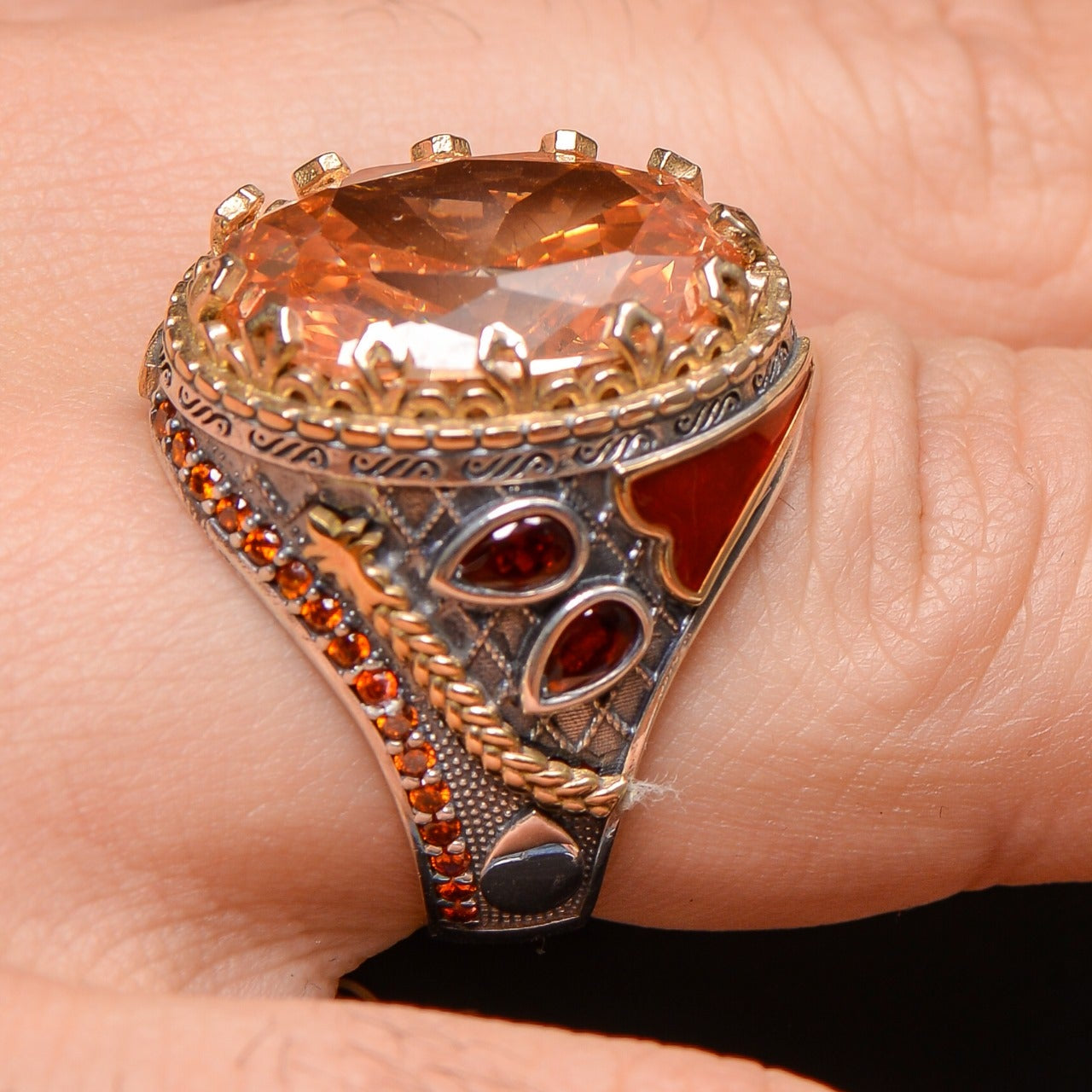 Sitrin Taşlı Şampanya Topaz Taş Süslemeli Gümüş Yüzük