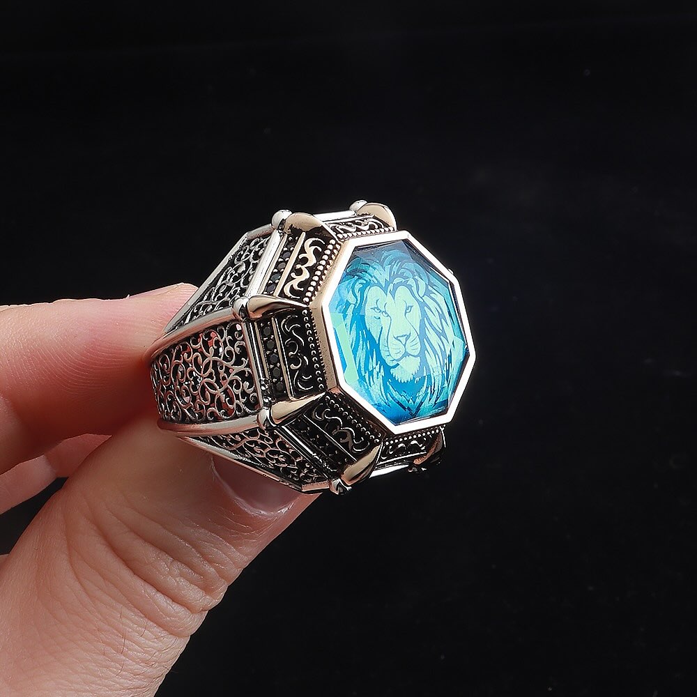 Aslan Portre İşlemeli Özel Seri Gümüş Yüzük