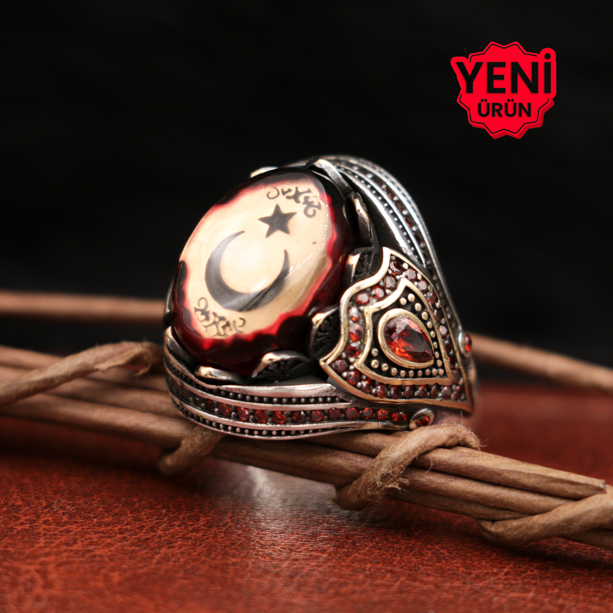 Ay Yıldızlı Akik Taşlı Gümüş Yüzük