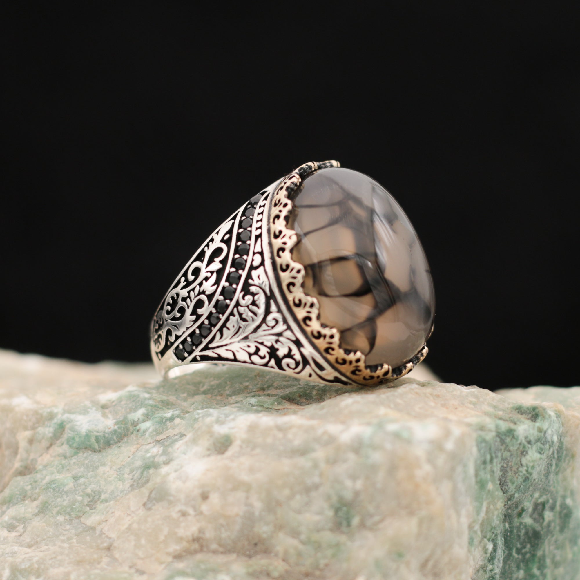 Çizgili Akik Taşlı Gümüş Yüzük