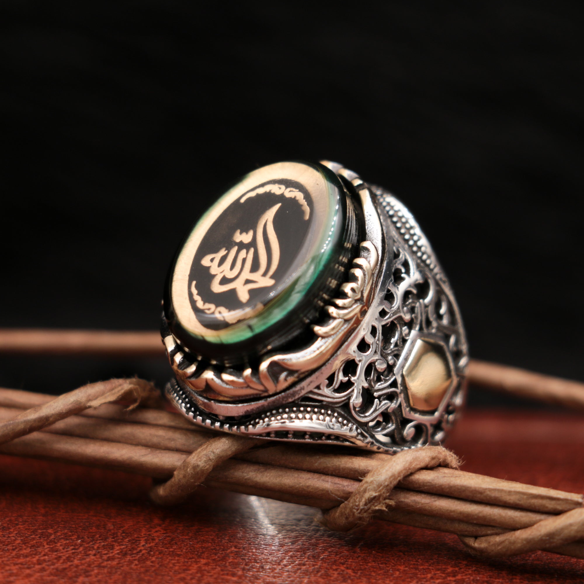 Hat Sanatı Elhamdülillah Yazılı Gümüş Erkek Yüzük