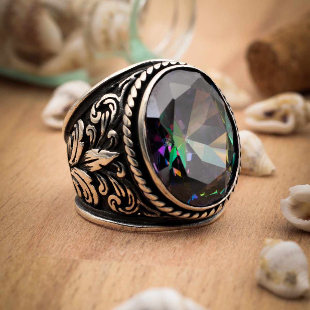 Mistik Topaz Taşlı Erkek Yüzük (SS-032)